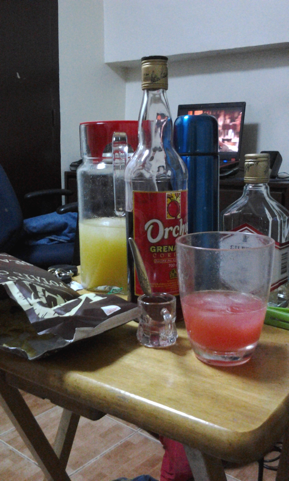 Drinking on our 23rd month together. I got to his place after work last night, and dinner (chicken with cheese, onions, and bell peppers on a baguette – I wolfed it all down and forgot to take a picture) was already waiting for me. You’re the sweetest. Here’s to more gin (tequila later into the night) + pineapple juice + grenadine + potato chips + Hell’s Kitchen nights together.