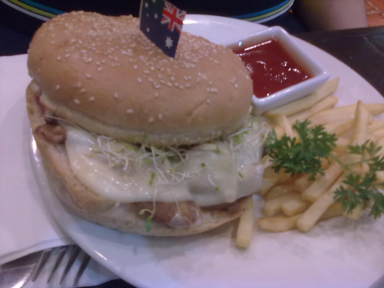 I had their Chicken Sausage Crunch. A sandwich with apple slices (and inexplicable little flags).