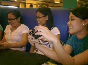 (Semi) group pic! Sorry for my sucky phone cam resolution. Let’s see if I can get the names correctly. Seated: Tin, Kenneth Yu, Dean Alfar, Andrew Drilon. Front row: Isa, Nikki Alfar, me!, Kate, Charles, TJ Dimacali (na boyfriend ni Ders! UJP-UP peeps? Remember Ders? Maganda hair niya. LOL.), Mia Tijam. Back row: Ejay, Alex Osias, Joseph, and Vin.
