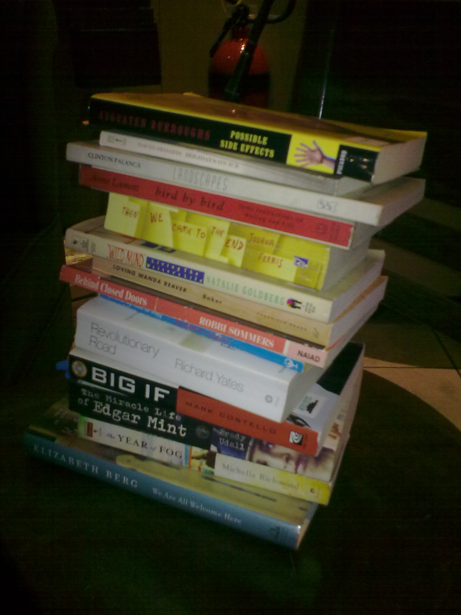 I lent Kat Joshua Ferris’s excellent Then We Came to the End and Atwood’s The Blind Assassin. Andrea ended up taking Revolutionary Road and Big If. I got er so many books I forgot to take note of them all haha. Will sort through them next week. Oh, God have mercy on my TBR pile now quickly turning into a mountain.